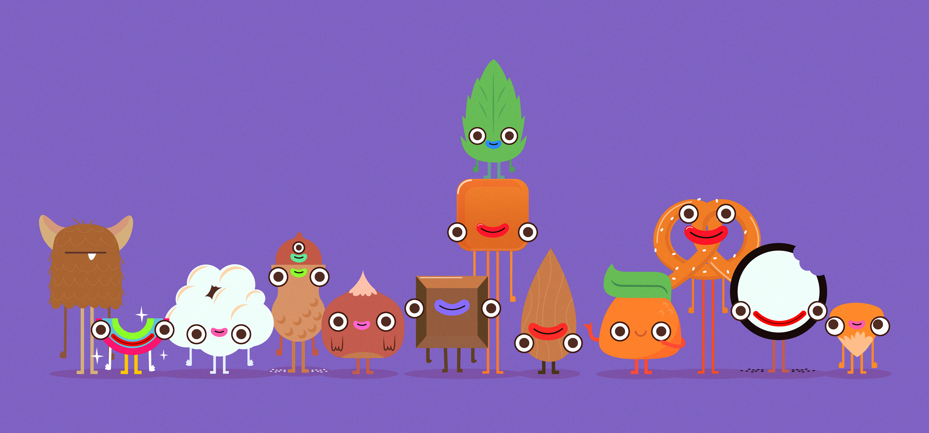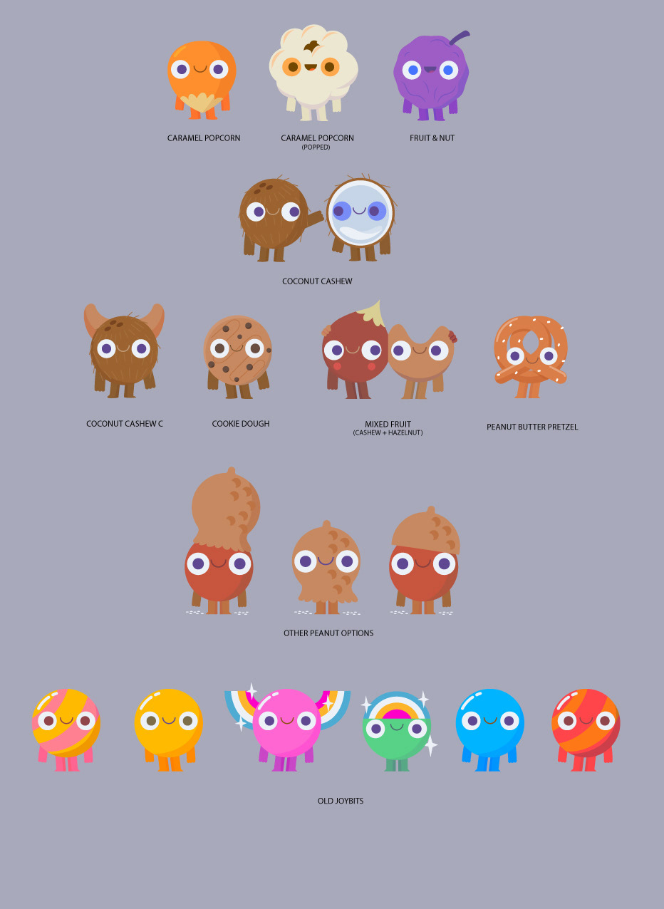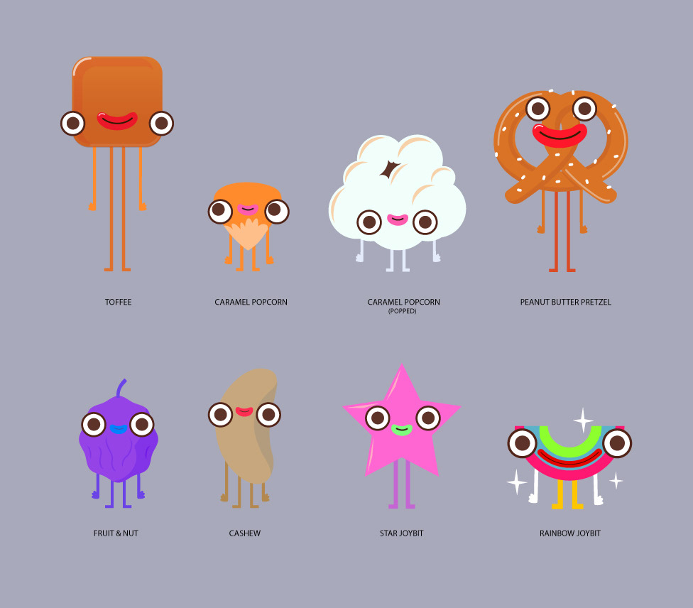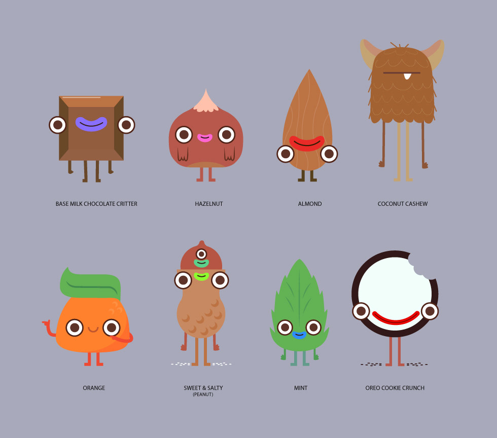 Two families of characters I developed comissioned by Punga.tv for a pitch for Cadbury.