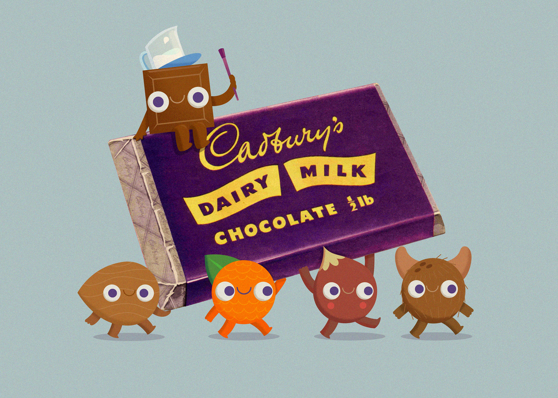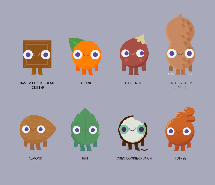 Each one of these little guys represent a Cadbury bar flavour.